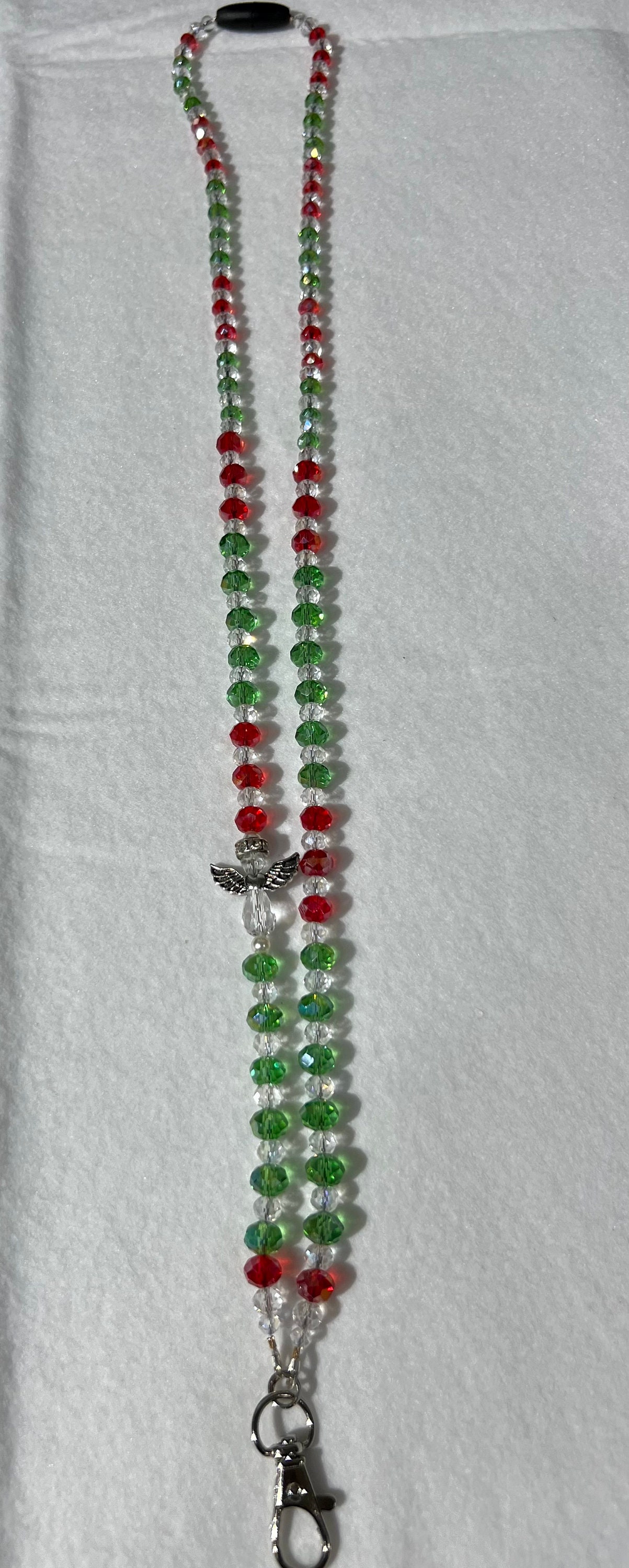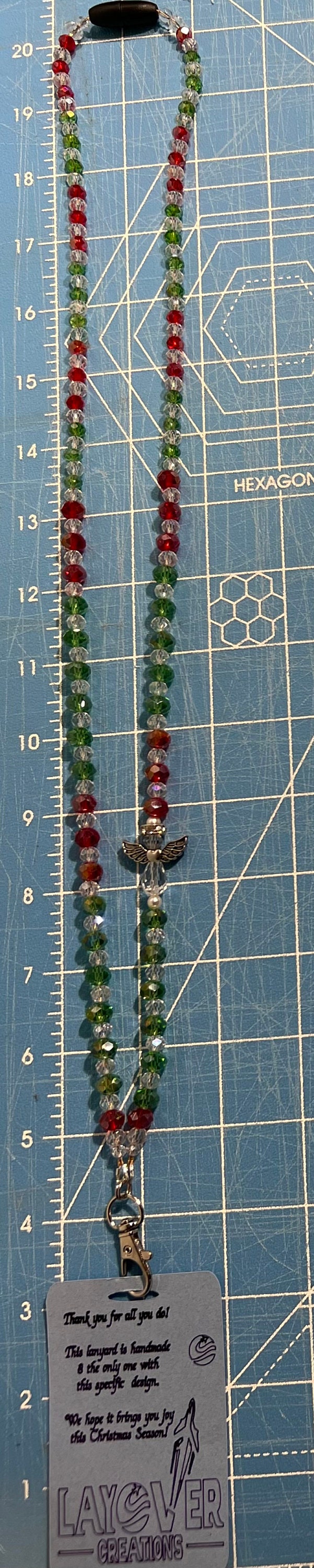 Clear Angel with Red, Green and Clear Sparkly Beads Create This Elegant Lanyard For Your Holiday Outfits Whether At Work Or Any Special Holiday Events
