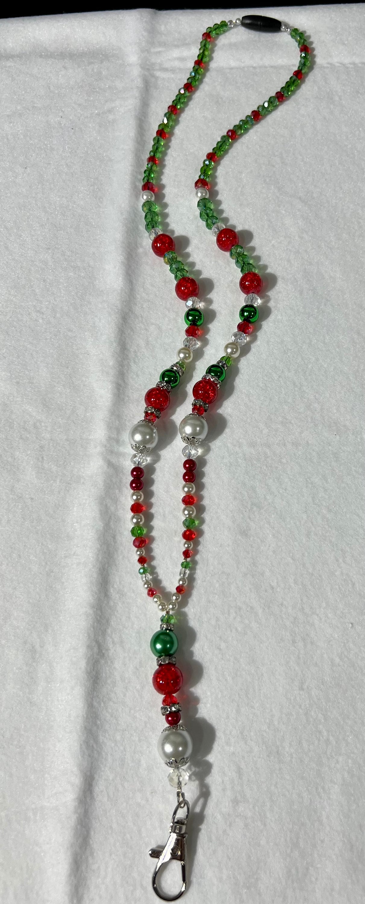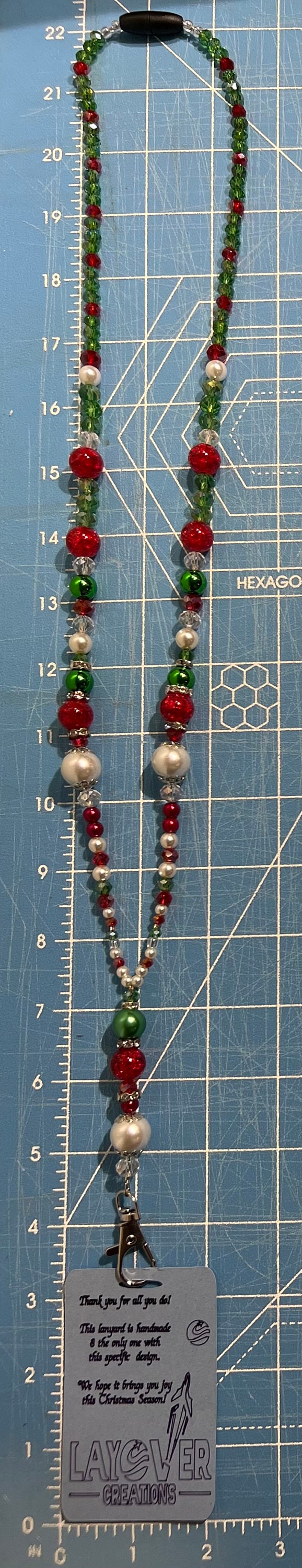 One of A Kind - Red, White, Green and Silver Beads Create This Elegant Lanyard For Your Holiday Outfits Whether At Work Or Any Special Holiday Events