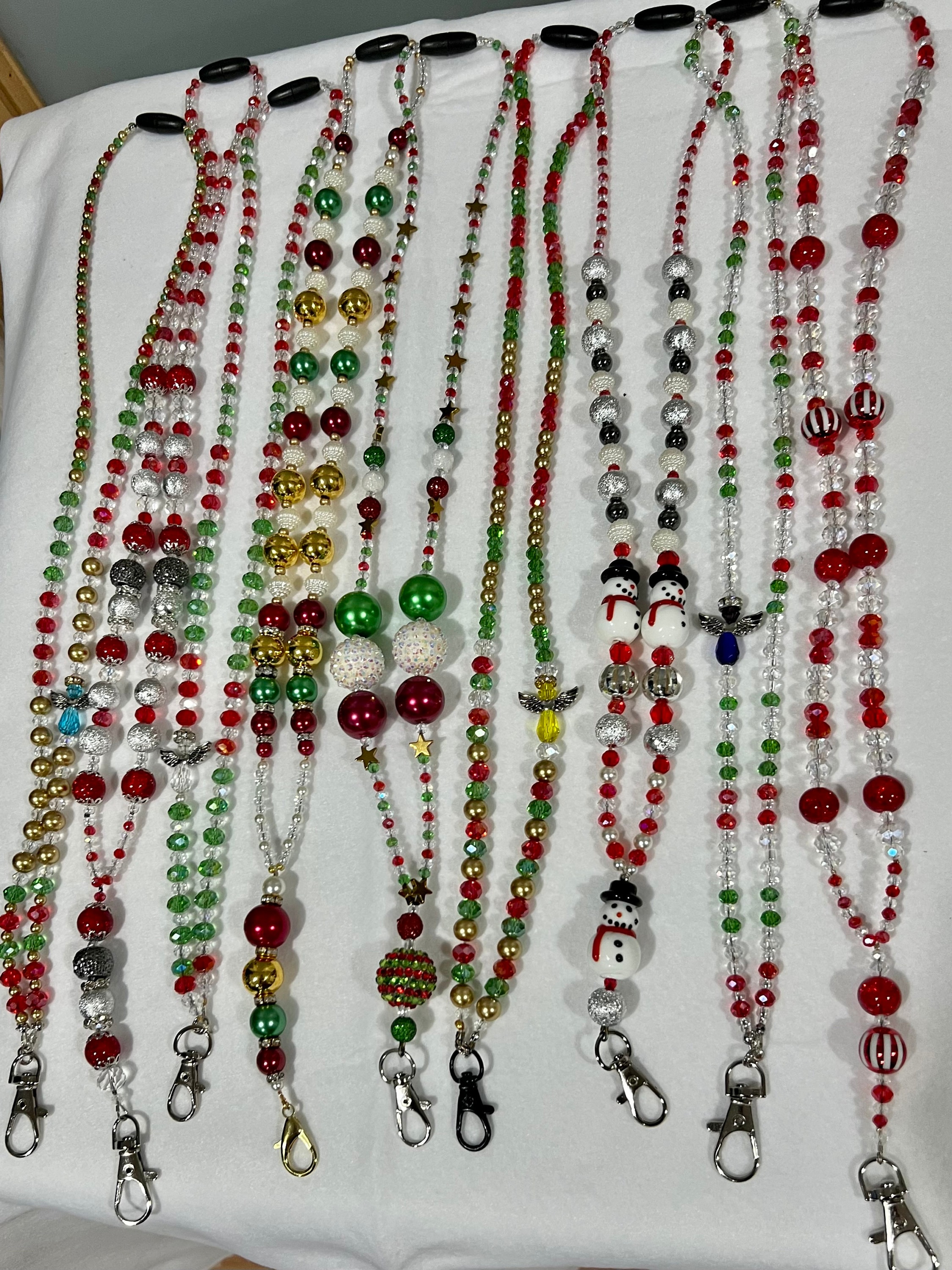 Due to various materials used and the fact that they are handmade, the lengths of each vary slightly. PLEASE SEE PHOTOS WITH RULER SHOWING THE OVERALL LENGTH AND INNER DIMENSION OF EACH LANYARD. In most cases, you can either use the breakaway plastic clasp or effortlessly slip them over your head. Plus, we offer a wide range of designs, including holiday and special event themes like Christmas, Mardi Gras, and Valentine's Day. Some lanyards feature inspirational elements, making them perfect for Christians, educators, medical professionals, flight attendants, or cruise enthusiasts.