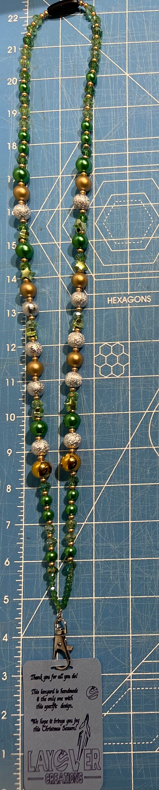 One Of A Kind - Green Stars, Silver, Green & Gold Mini Ornament Beads Create This Elegant Lanyard For Your Holiday Outfits Whether At Work Or Any Special Holiday Events