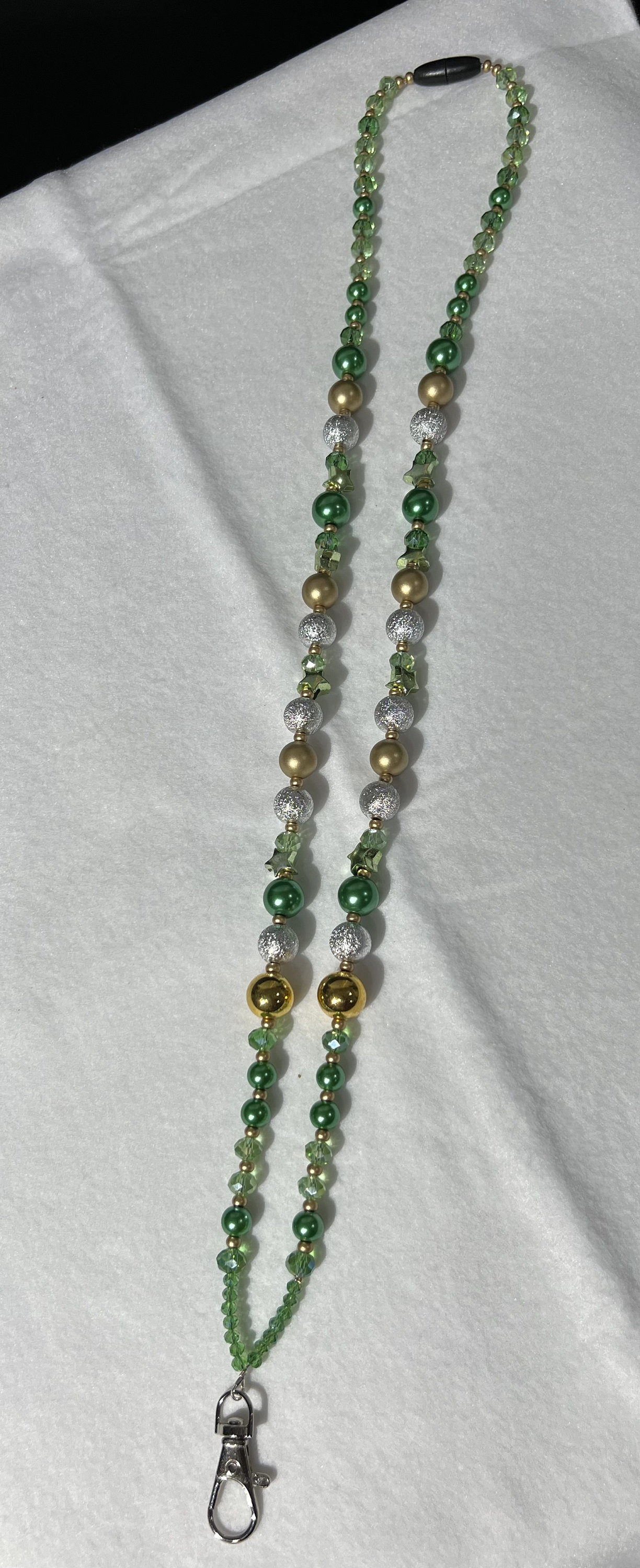 Green Stars, Silver, Green & Gold Mini Ornament Beads-Breakaway Lanyard 13-Stunning Gift for You, Loved Ones, Exchange Gifts and Colleagues