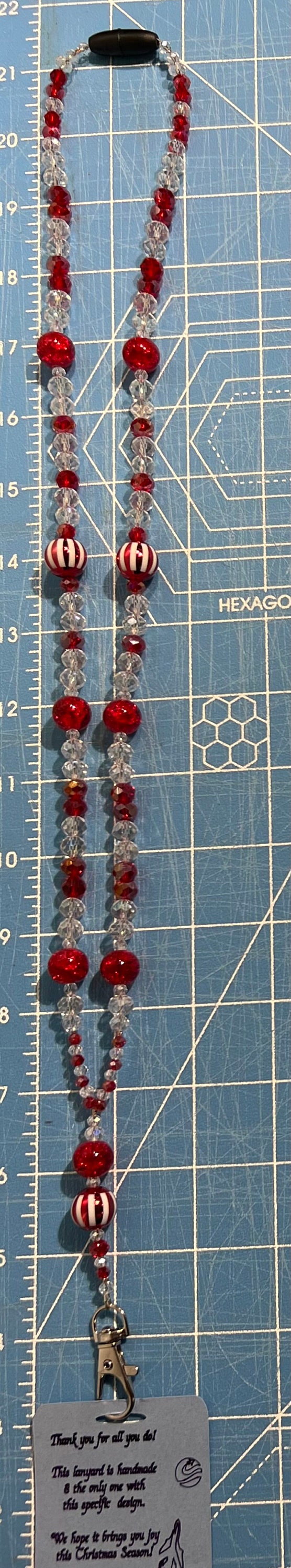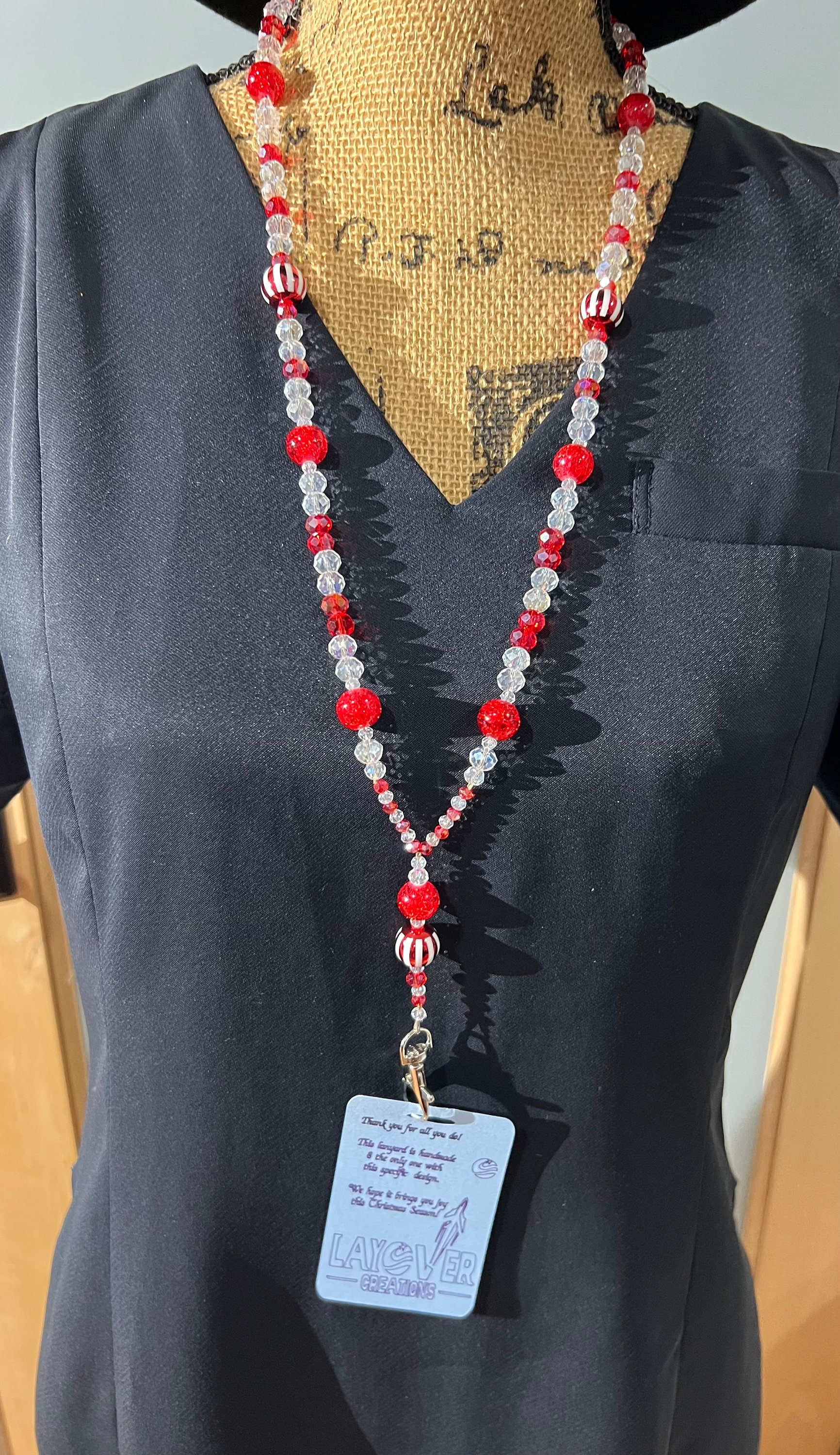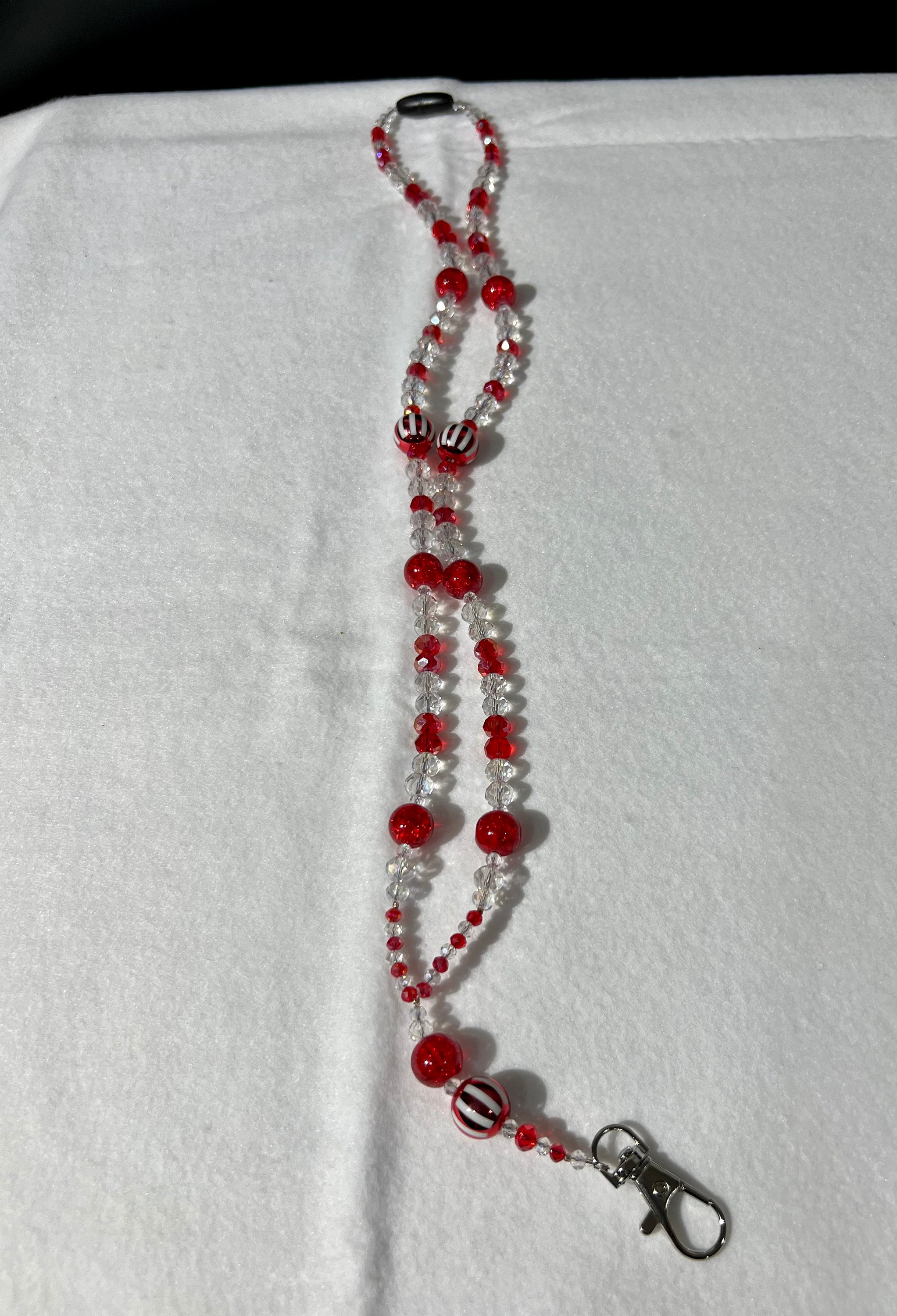 Red, White and Clear Sparkly Beads Create This Elegant Lanyard For Your Holiday Outfits Whether At Work Or Any Special Holiday Events