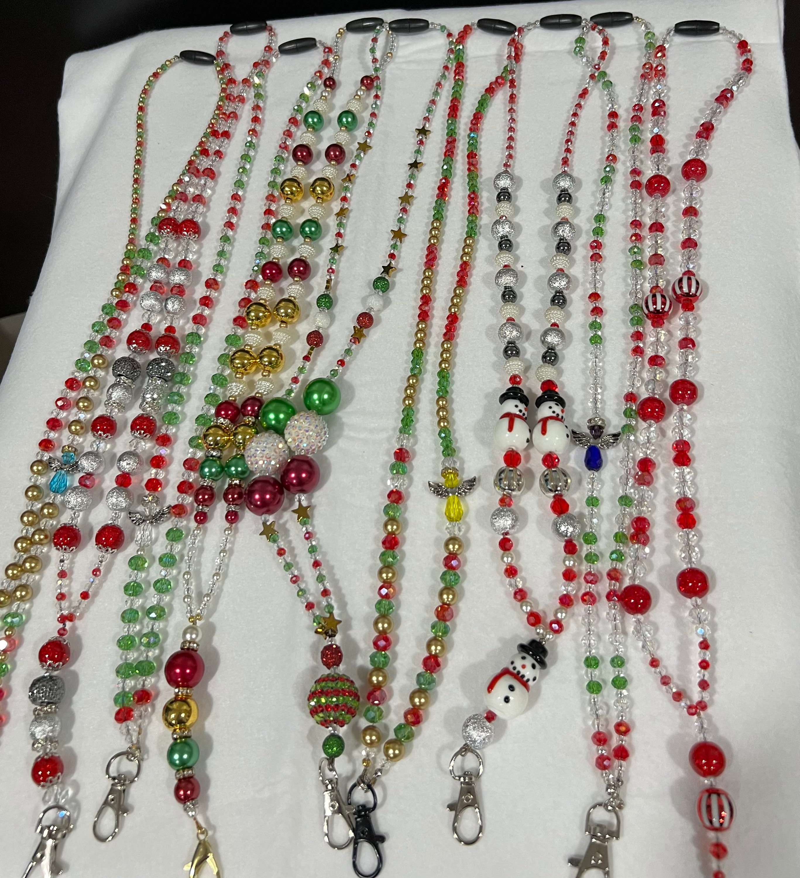 Due to various materials used and the fact that they are handmade, the lengths of each vary slightly. PLEASE SEE PHOTOS WITH RULER SHOWING THE OVERALL LENGTH AND INNER DIMENSION OF EACH LANYARD. In most cases, you can either use the breakaway plastic clasp or effortlessly slip them over your head. Plus, we offer a wide range of designs, including holiday and special event themes like Christmas, Mardi Gras, and Valentine's Day. Some lanyards feature inspirational elements, making them perfect for Christians, educators, medical professionals, flight attendants, or cruise enthusiasts.