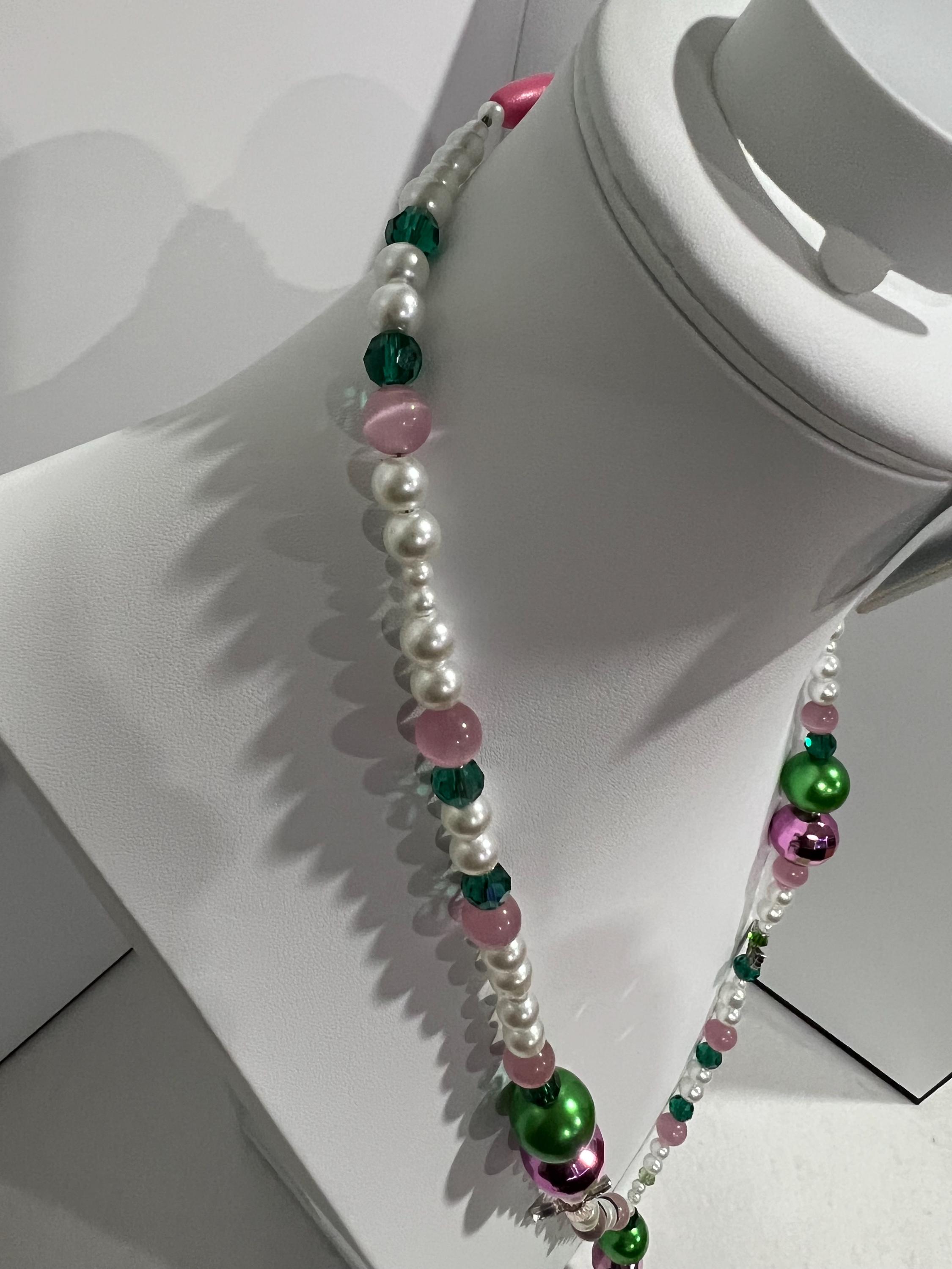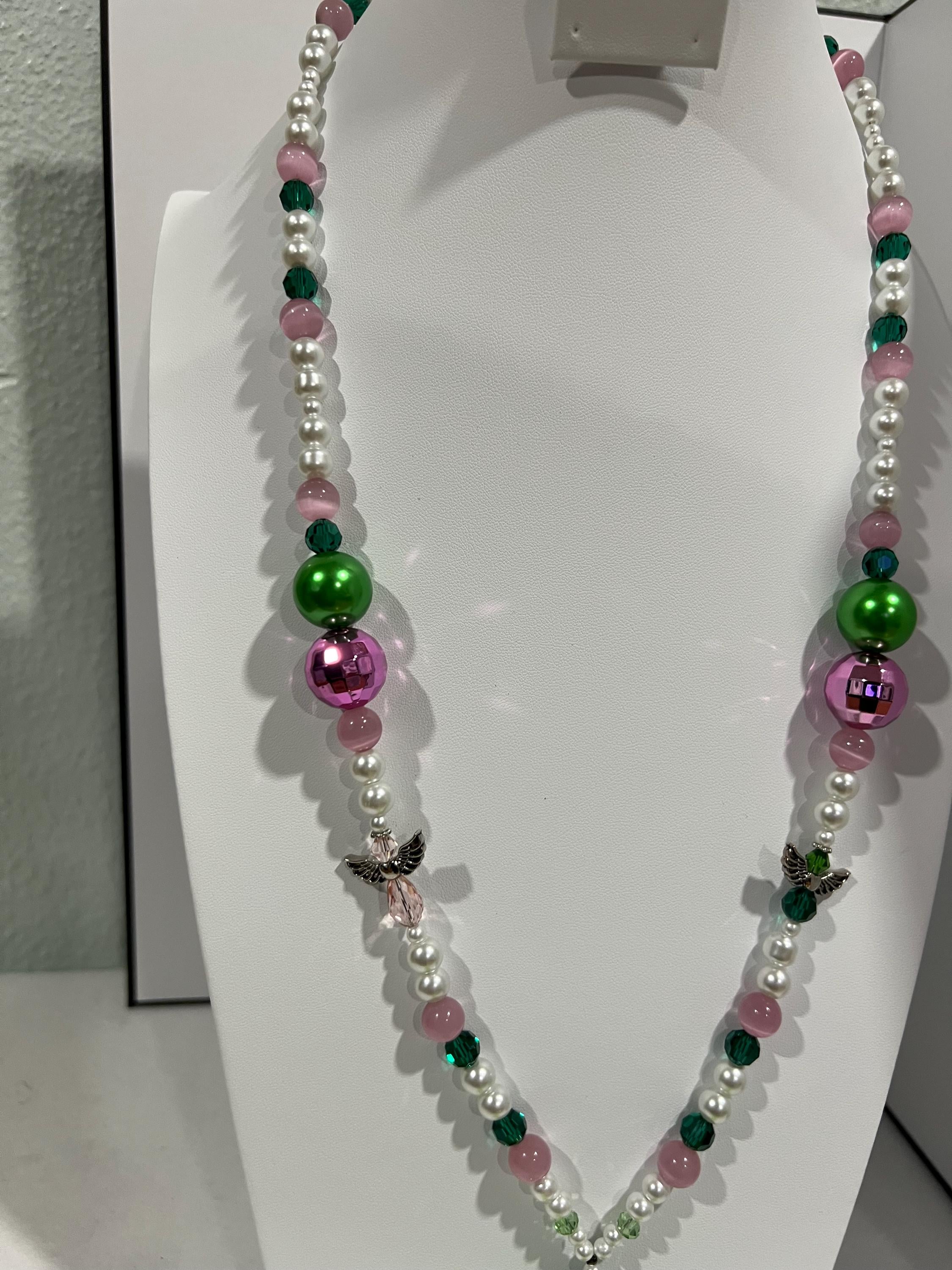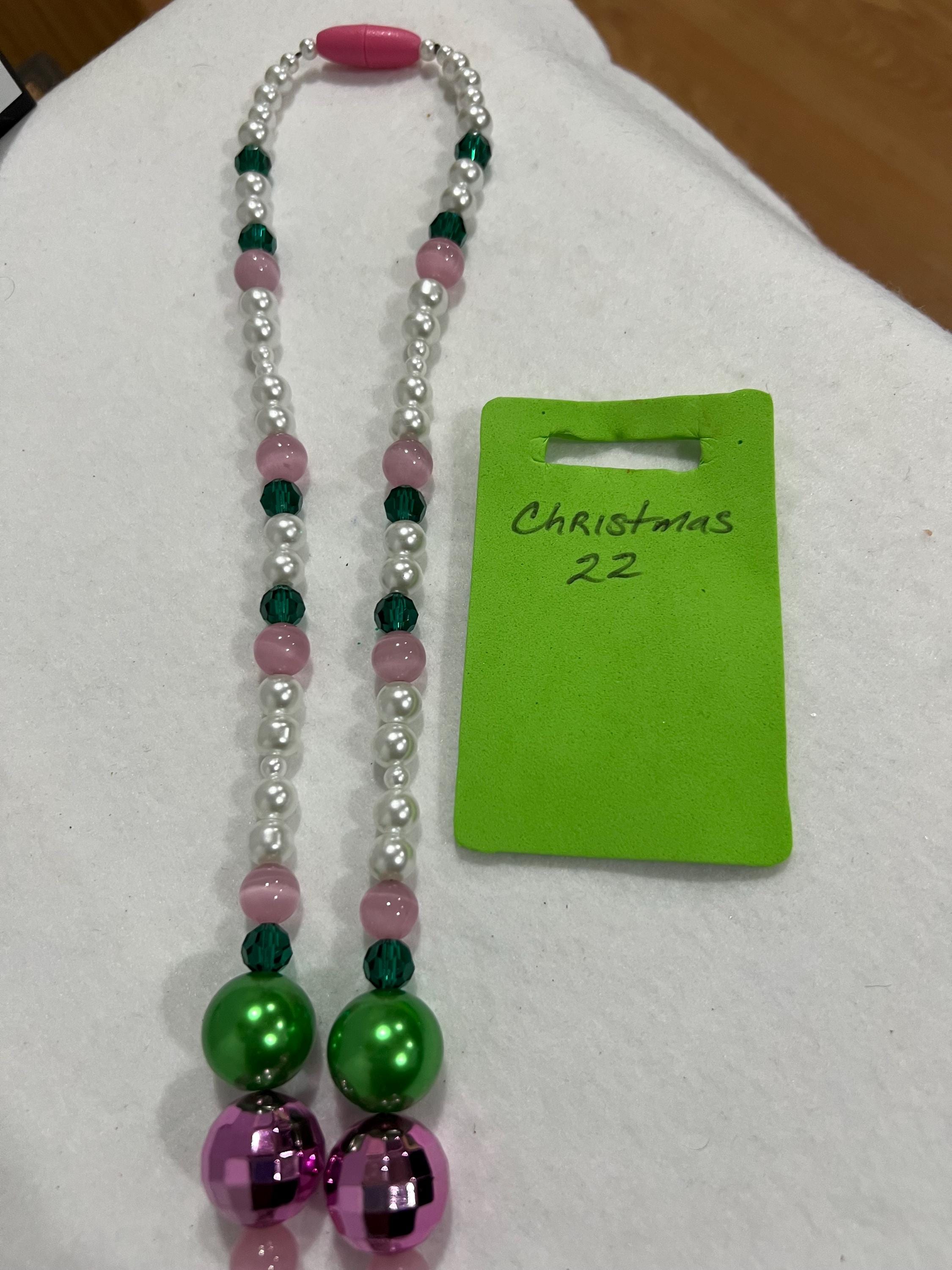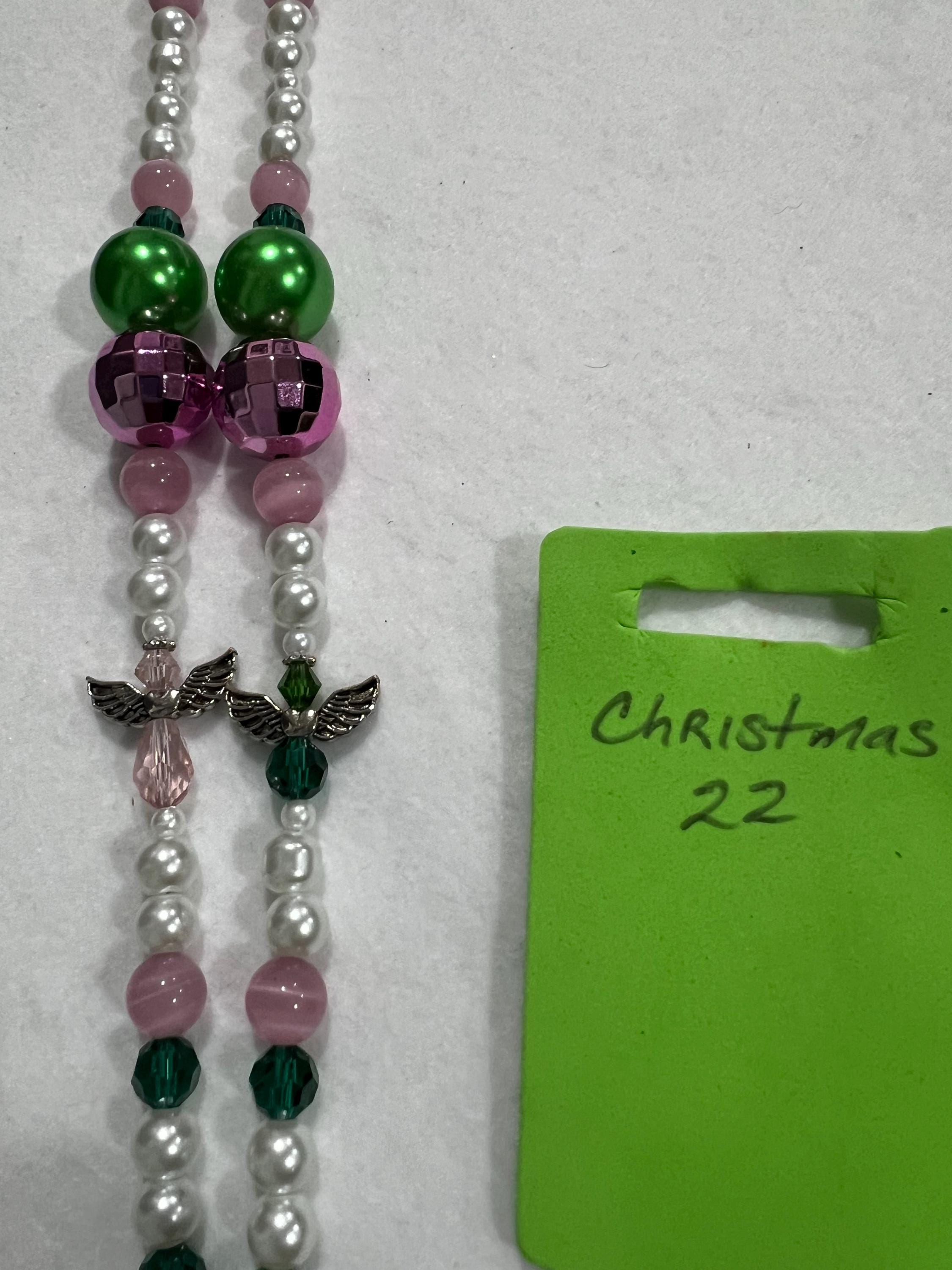 Christmas 22 - Unique One-Of-A-Kind Breakaway Lanyard - Pink, Green and White Beads with Fuchsia Ornaments and Beads To Create Angels