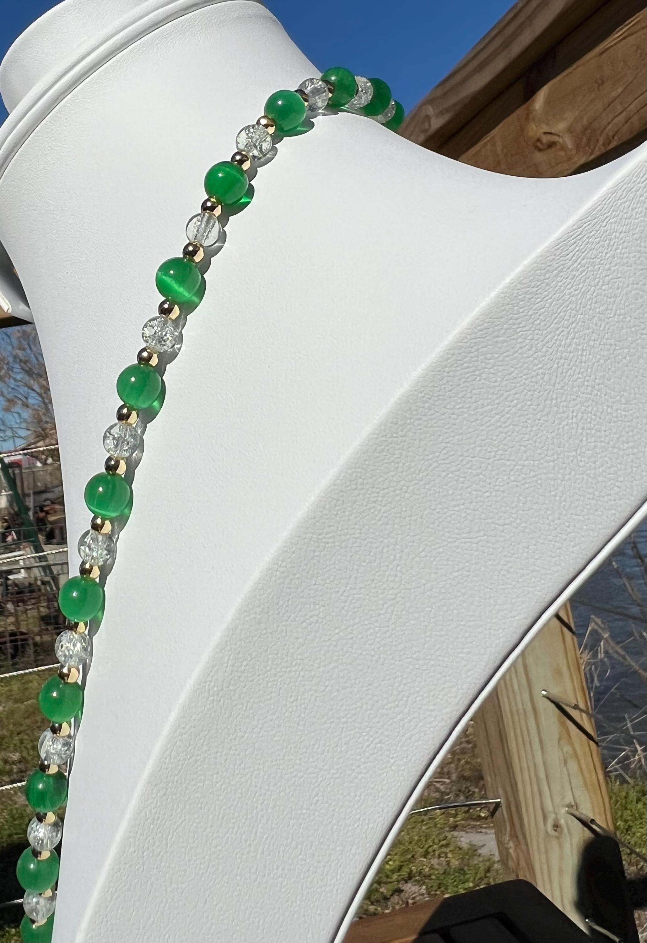 Each necklace in this collection is individually handcrafted and may include a combination of multi-faceted beads, natural stones, glass beads, polymer clay, rhinestones, cubic zirconia accents, and gold-plated elements. No two are alike, ensuring the necklace you receive is truly one of a kind.