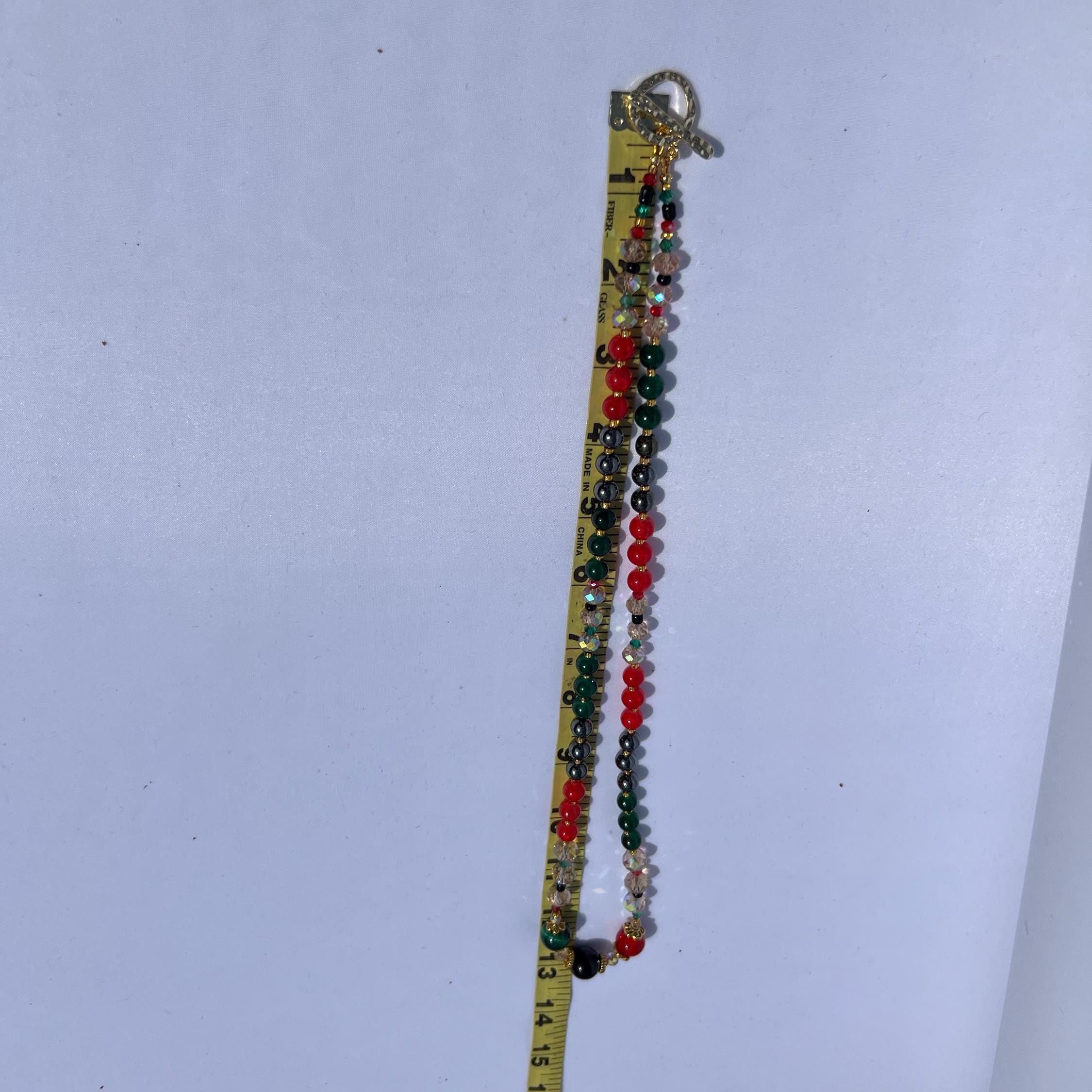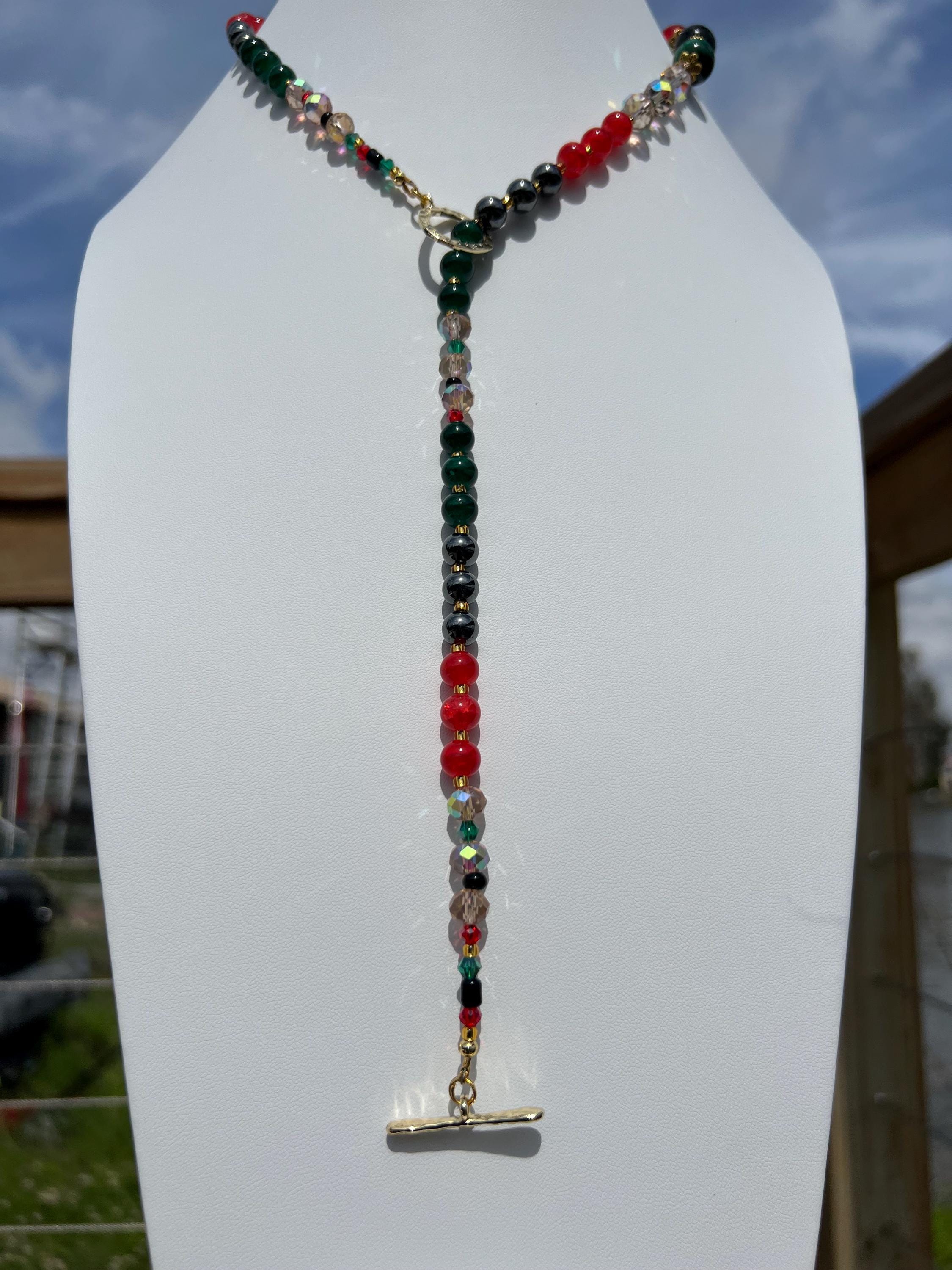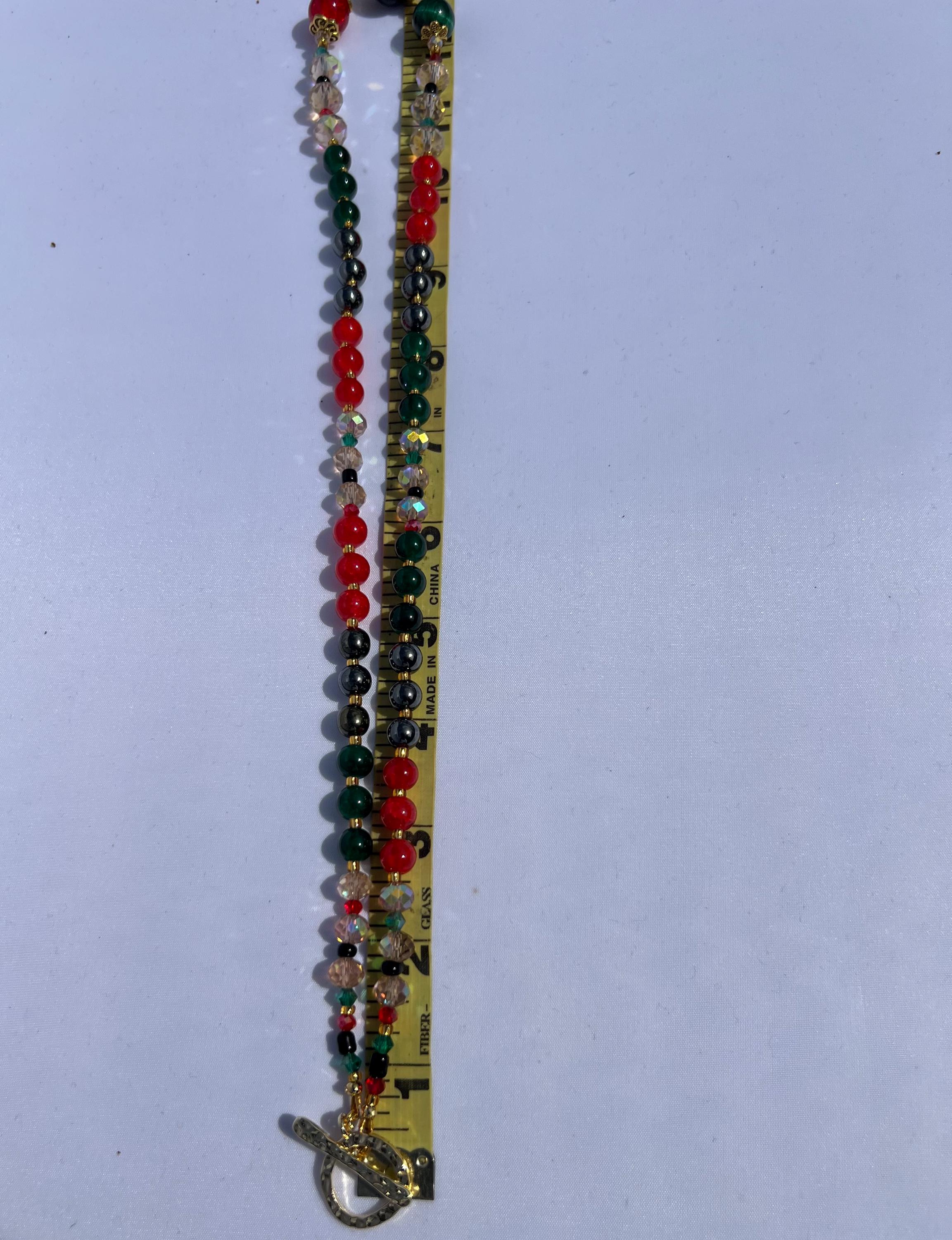 Black Heritage Month Beaded Necklace – Red Black Green and Gold with a Toggle Clasp