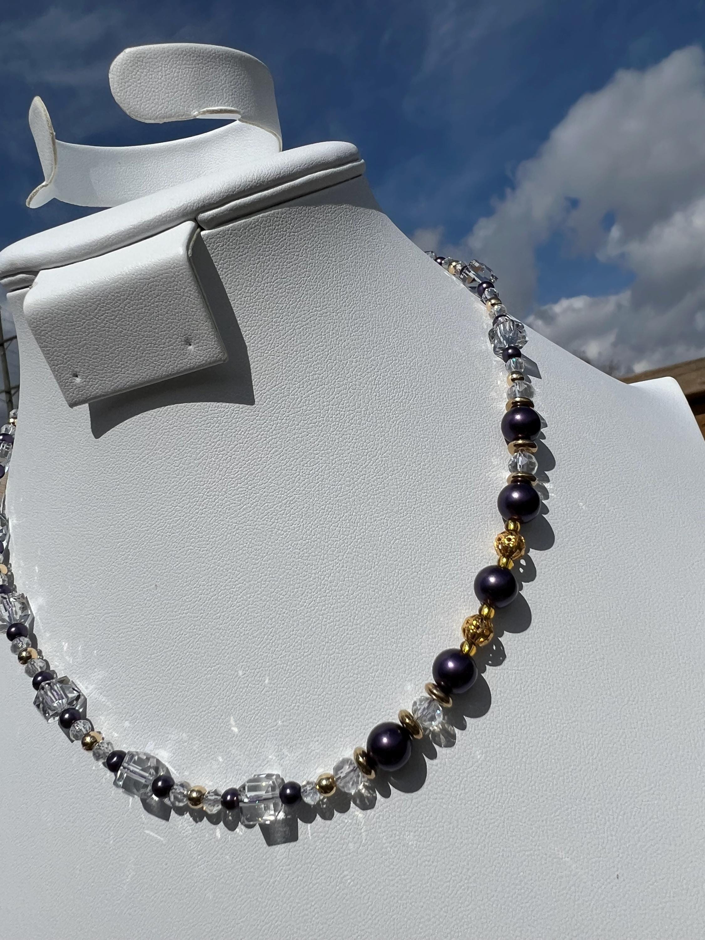 Each necklace in this collection is individually handcrafted and may include a combination of multi-faceted beads, natural stones, glass beads, polymer clay, rhinestones, cubic zirconia accents, and gold-plated elements. No two are alike, ensuring the necklace you receive is truly one of a kind.
