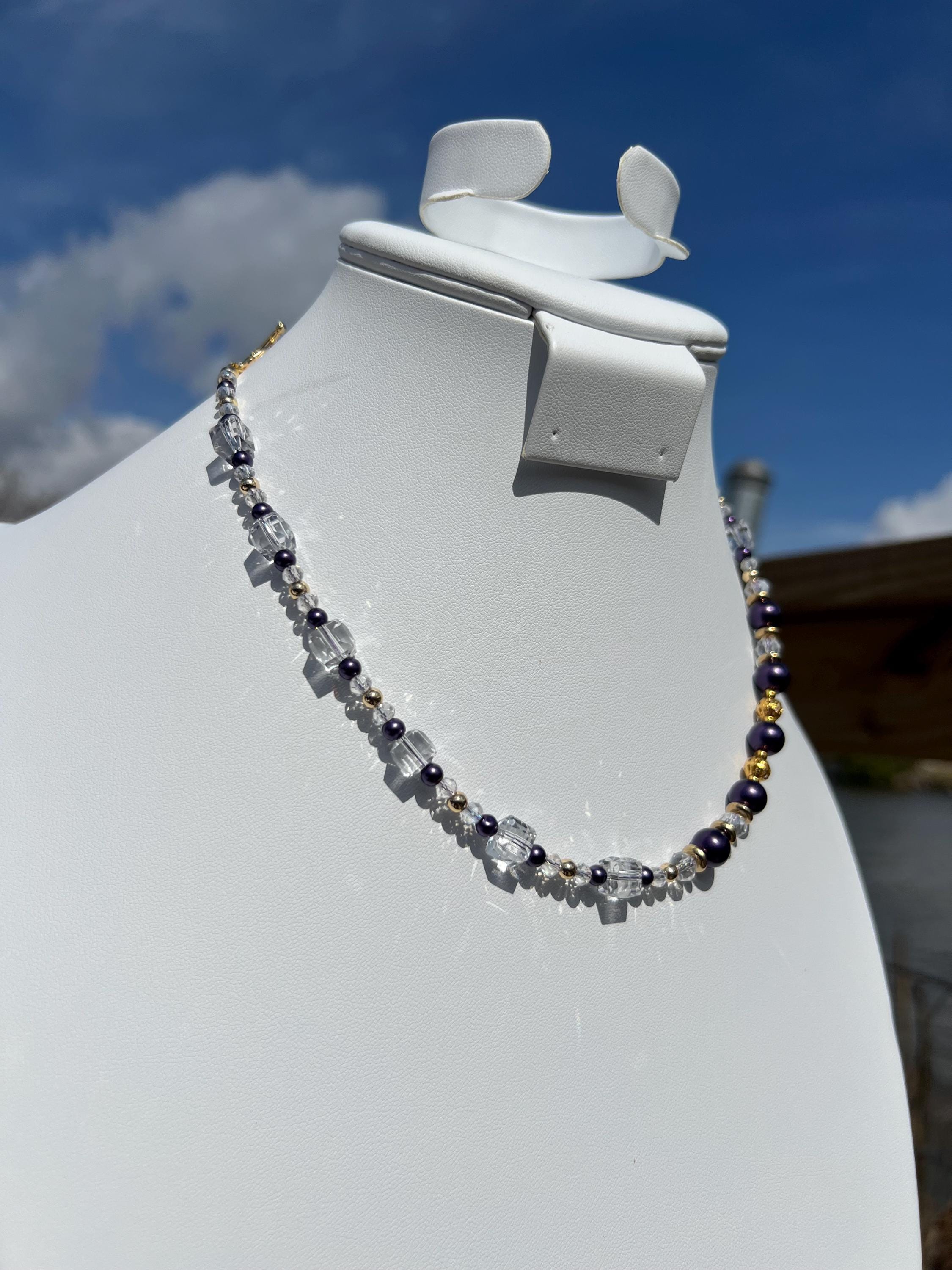 Celebrate pride of your school or athletic team colors with a one-of-a-kind handcrafted necklace designed for versatility, color, and joyful expression. Each necklace in this collection is created using a vibrant mix of purple and gold beads inspired by our fun desire to wear school or team colors, making it perfect for festive events, office celebrations, cruises, or everyday statement wear.