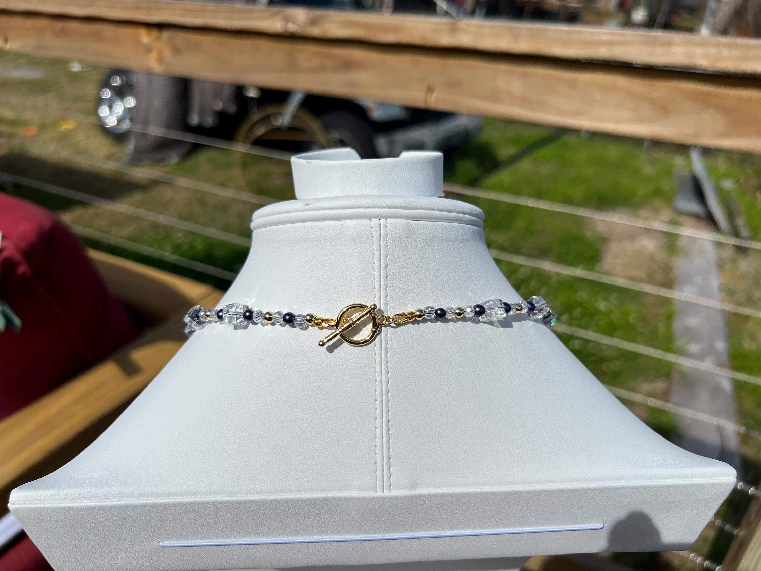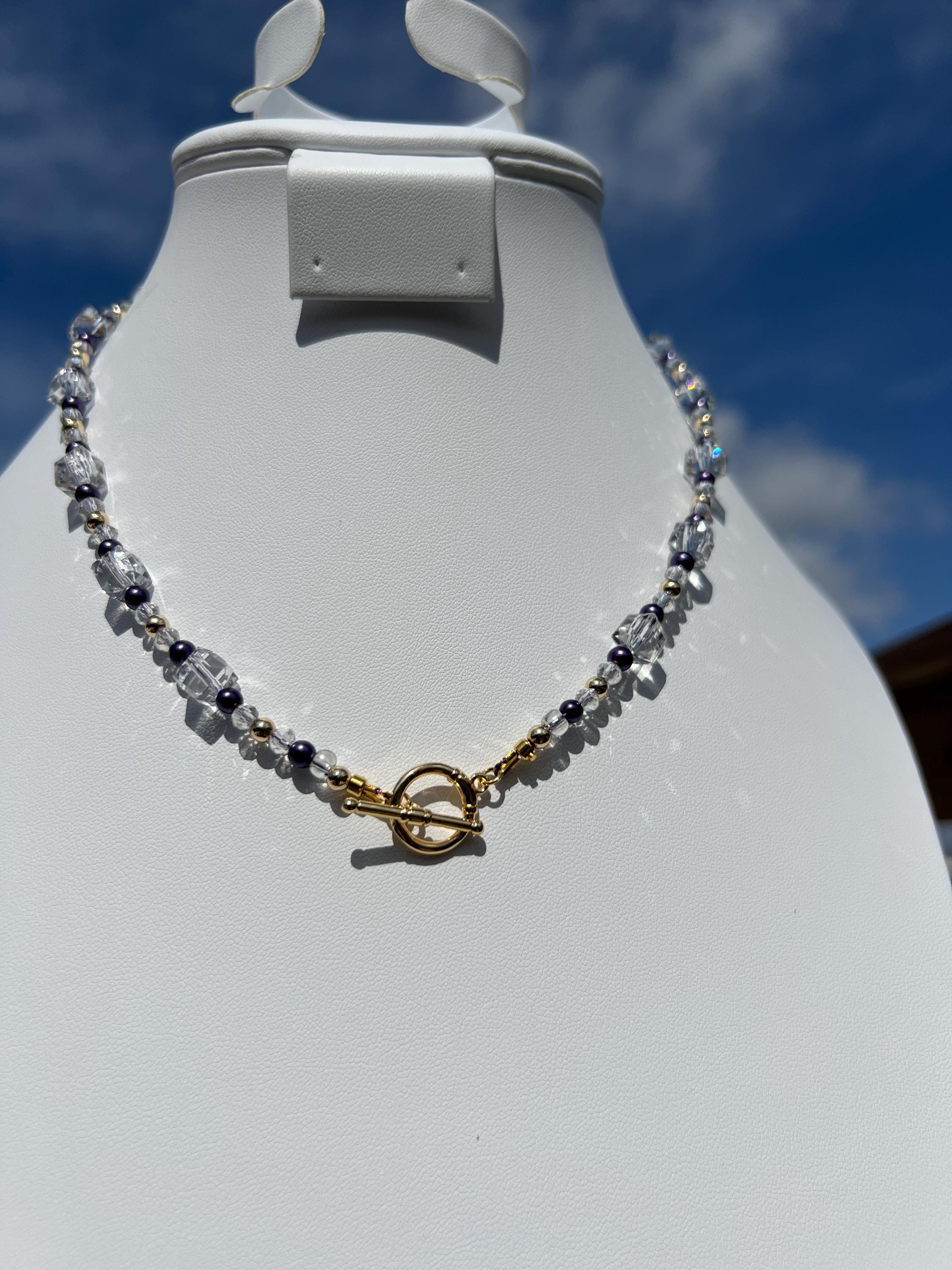 17-1/2” Purple and Gold Asymmetric Necklace with Toggle Clasp for Versatility