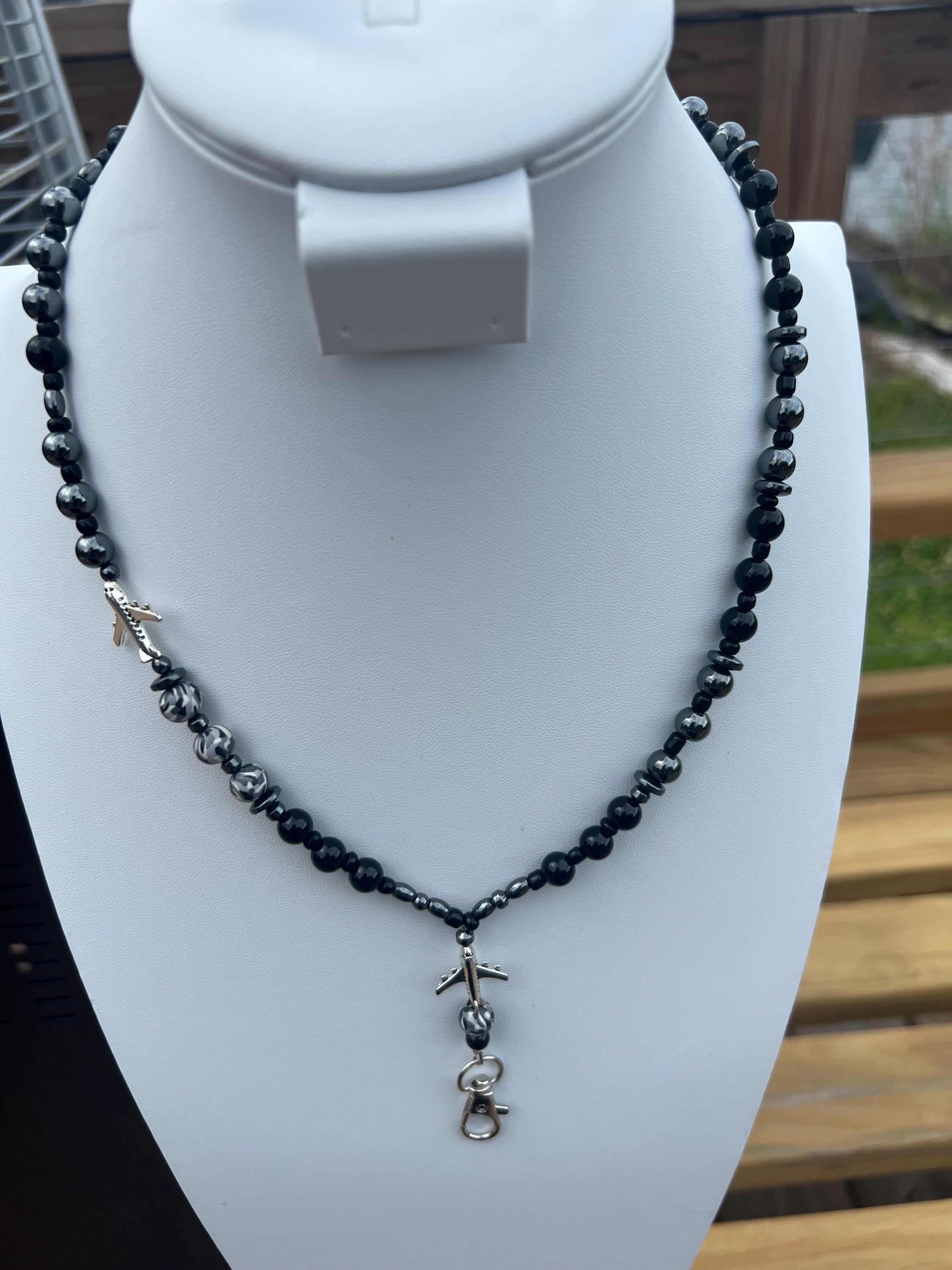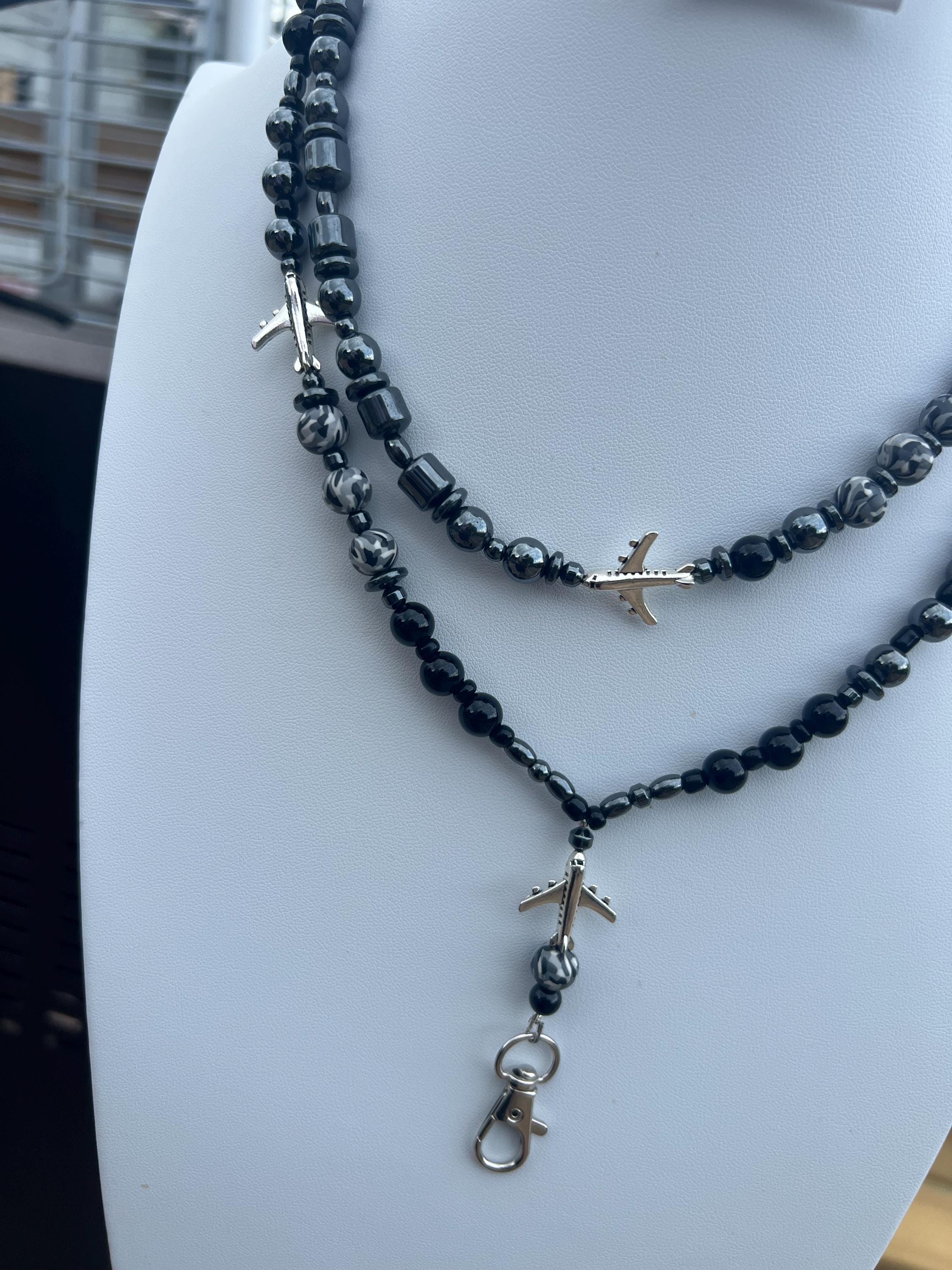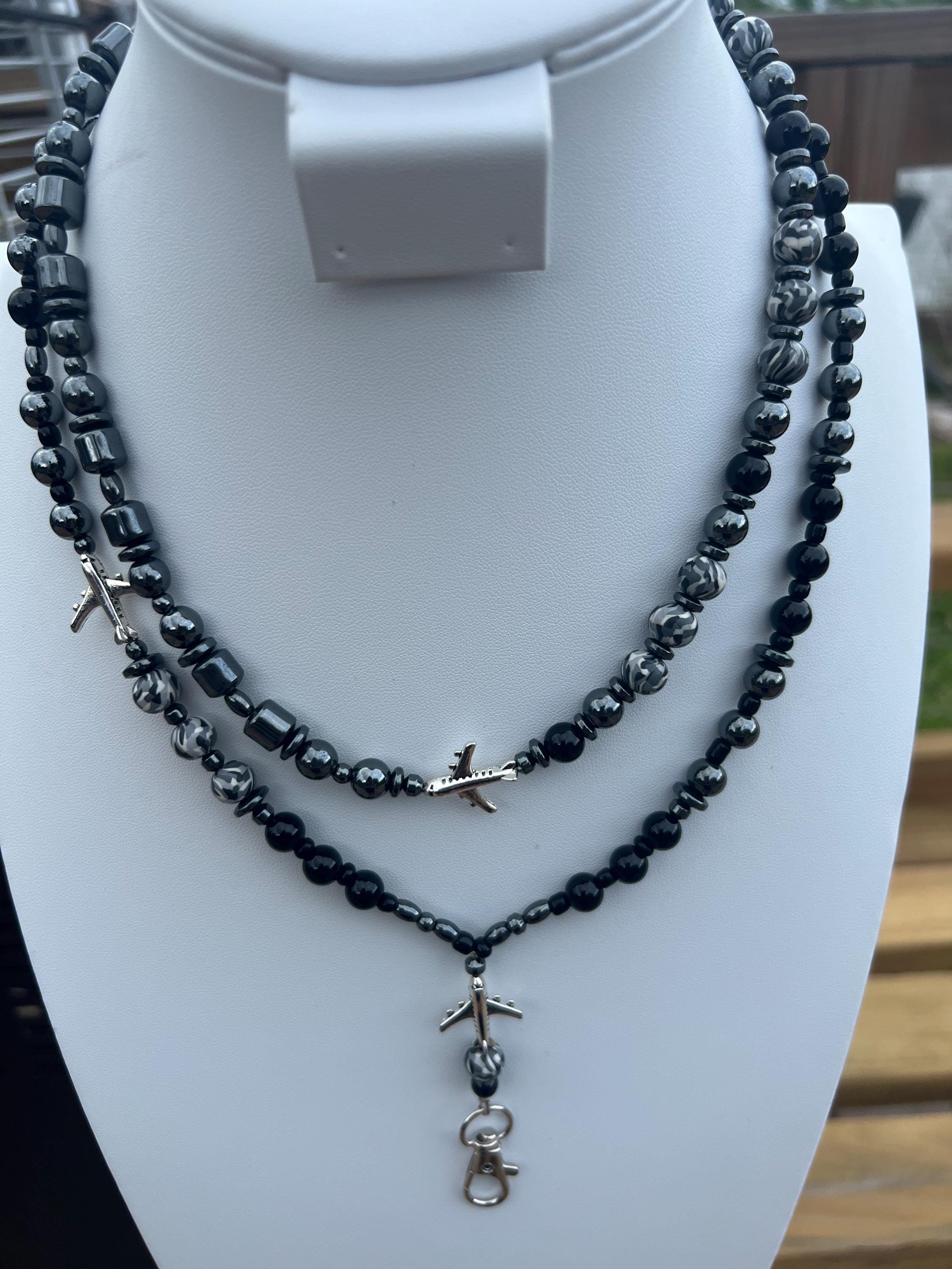 Black & Grey Aviation Jewelry Set - Matching Breakaway Lanyard and Necklace