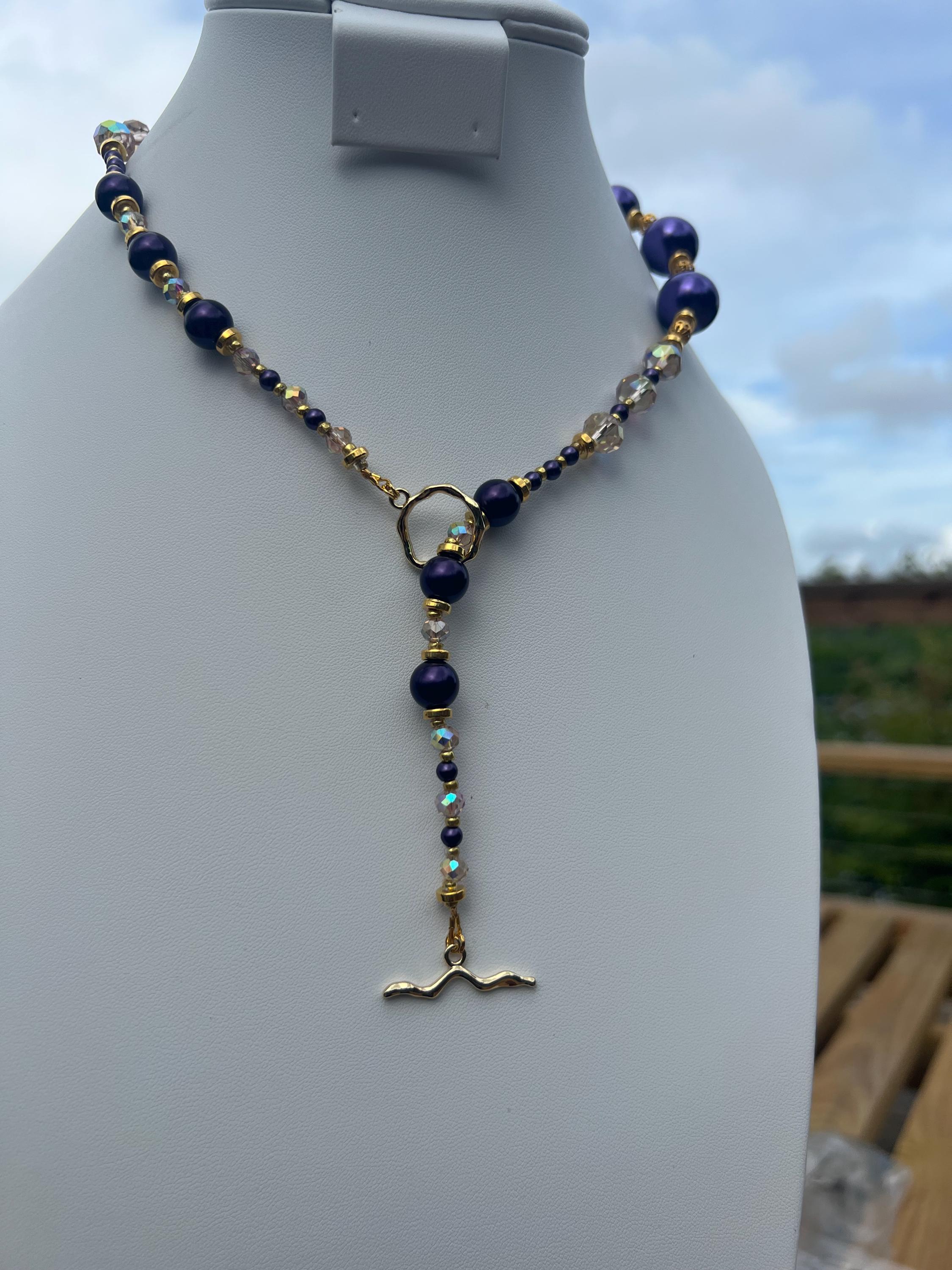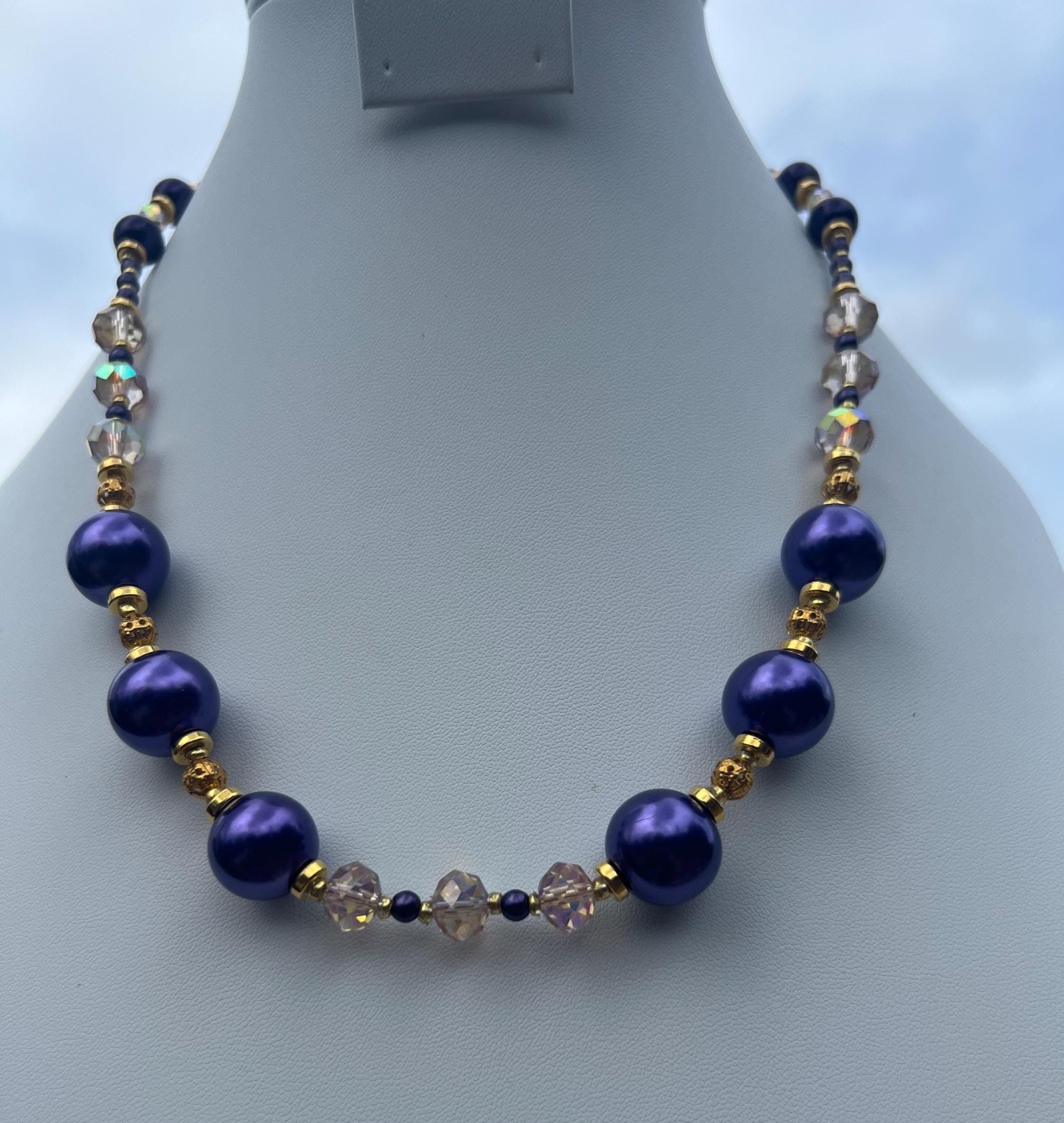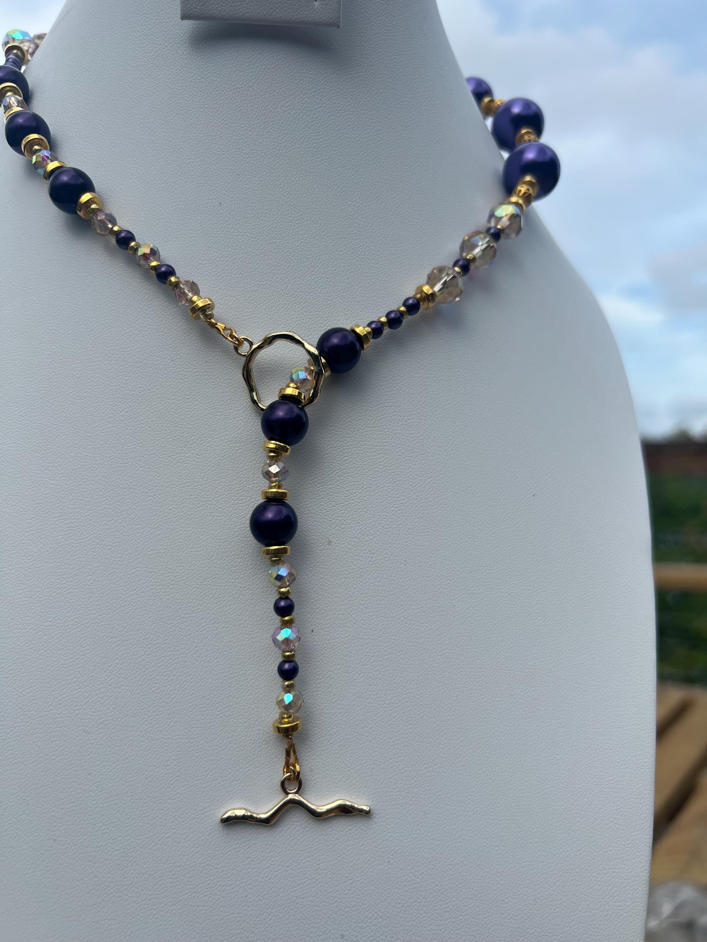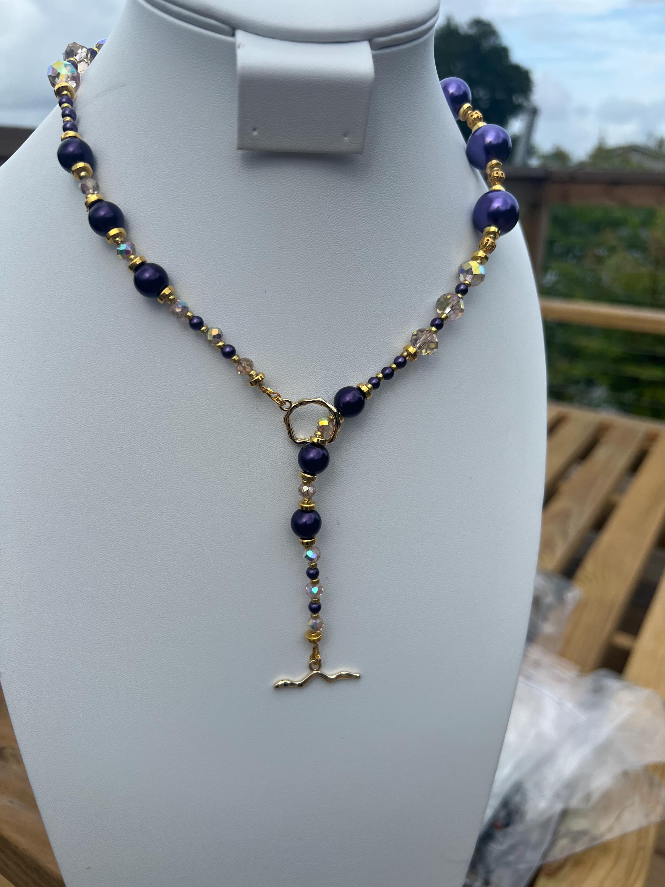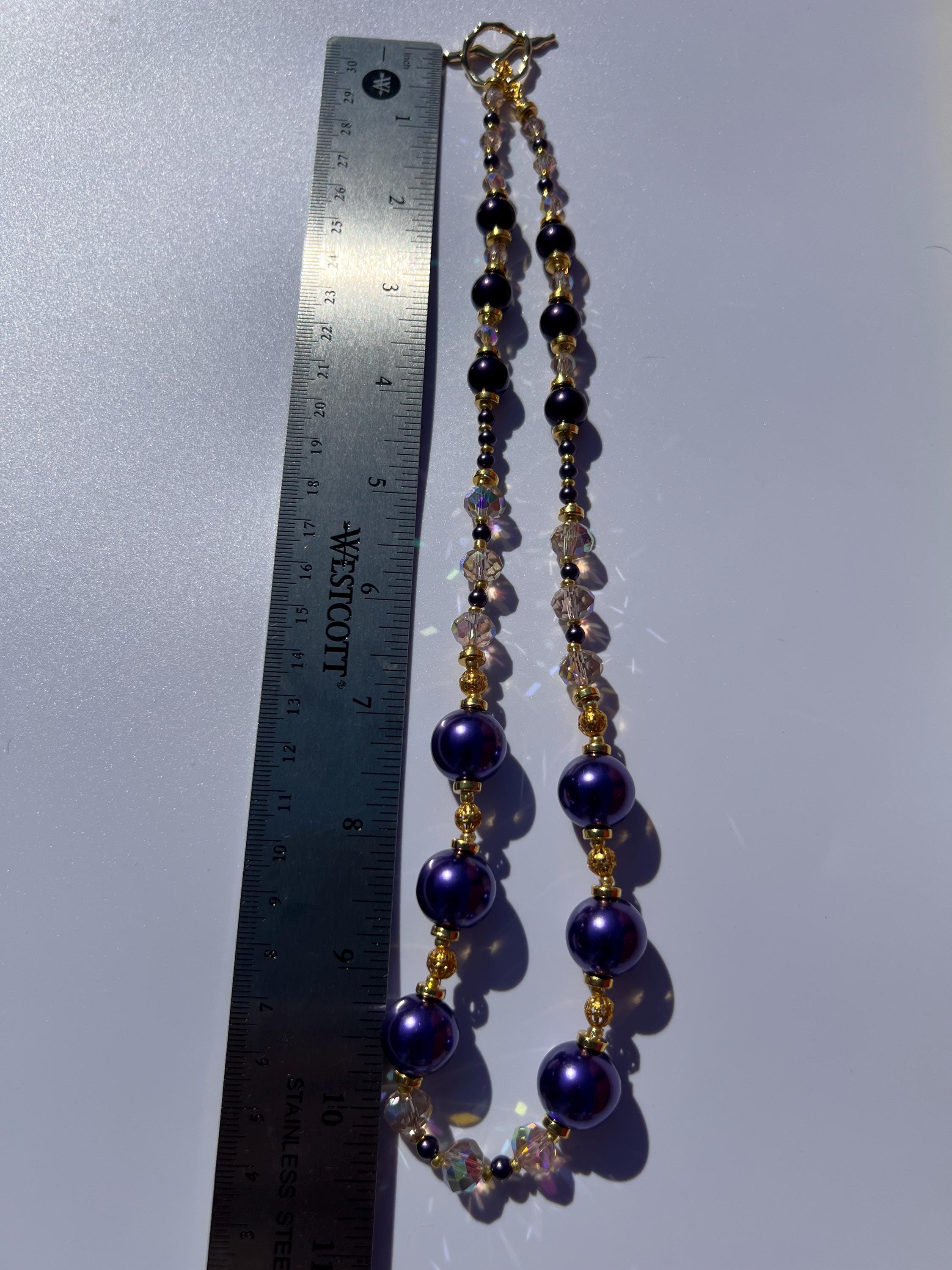 Purple, Gold and Rhinestone Beaded Necklace For Graduation Parties & Celebrations