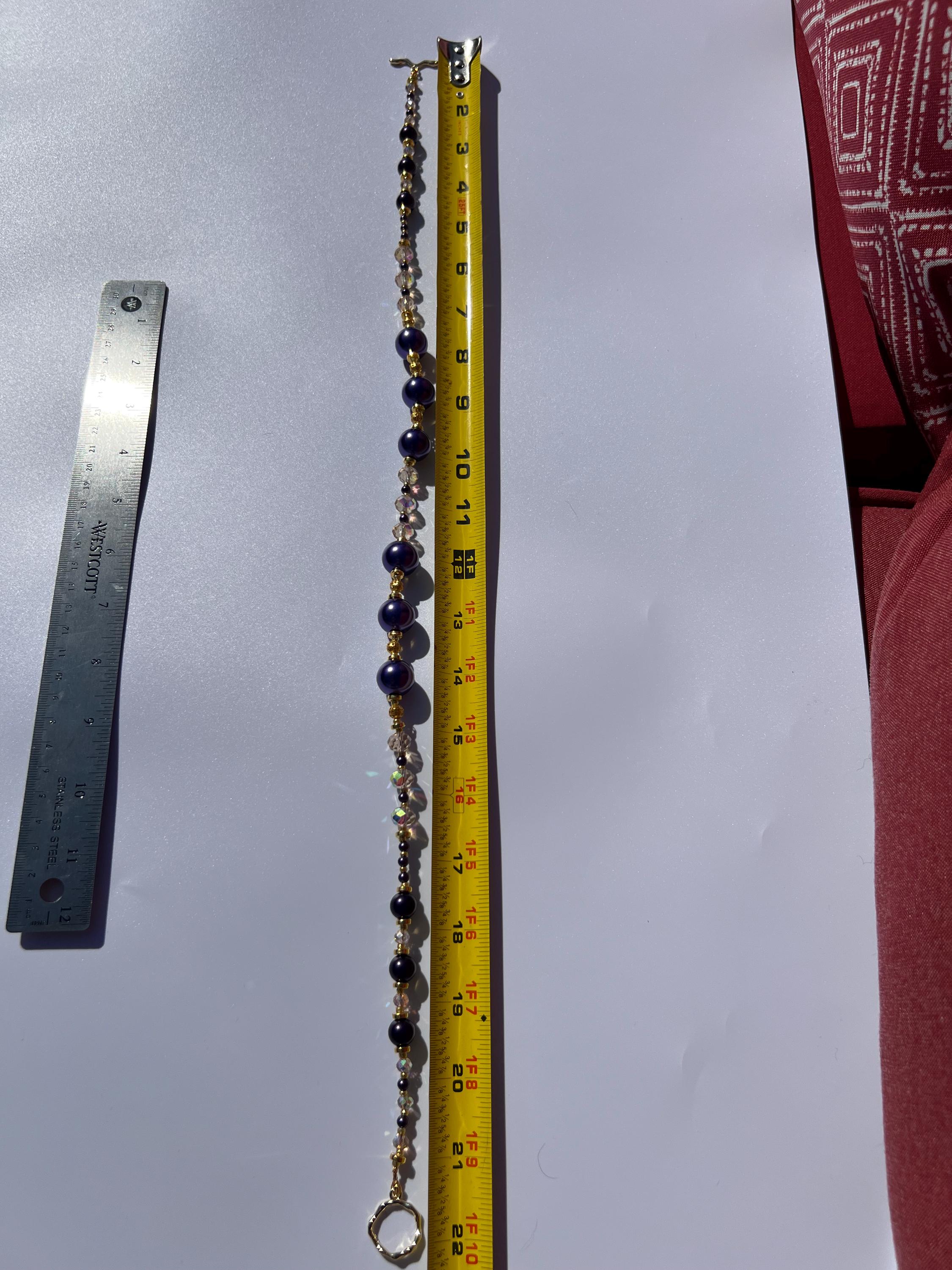 This 22-1/2 inch necklace pairs vibrant purple and gold with rhinestone beads and gold-plated accents for a bright, festive graduation or team spirit look. Its longer, elegant length makes it perfect for layering, graduation outfits, or adding team spirit flair to any style. Arrives in a luxurious purple velvet-lined drawer box for gifting and safe storage.